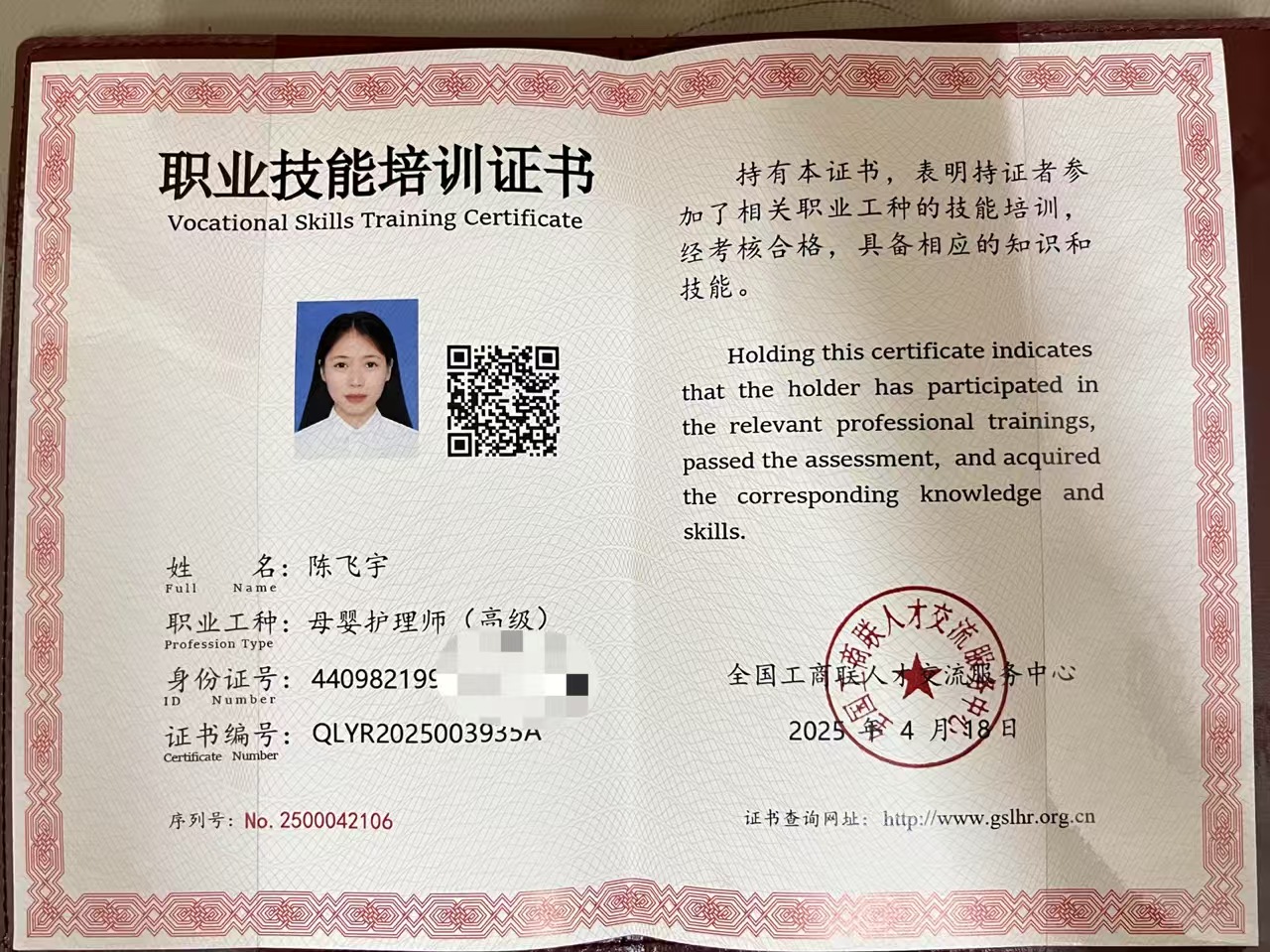 广东惠州龙门县人,老家茂名的,会粤语,简单英语,普通话,有幼教资深的工作经验,有育婴师的工作经验,护理过2个以上新生儿,会做各类煲汤、素食、炒菜、广式菜等。经过专业的培训,熟练掌握了专业的知识与技能,具备护理新生儿及顺产产妇的经验,在宝宝护理方面擅长黄疸观察,脐部护理,红臀、湿疹的预防及护理,呛奶急救等;产妇护理方面擅长乳房基本护理,恶露观察,伤口护理等,喜欢宝宝,通过肢体动作、被动操、抚触按摩等方式对宝宝进行启蒙教育