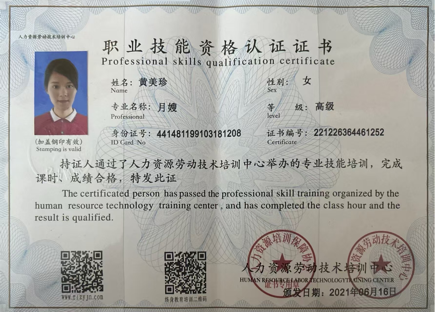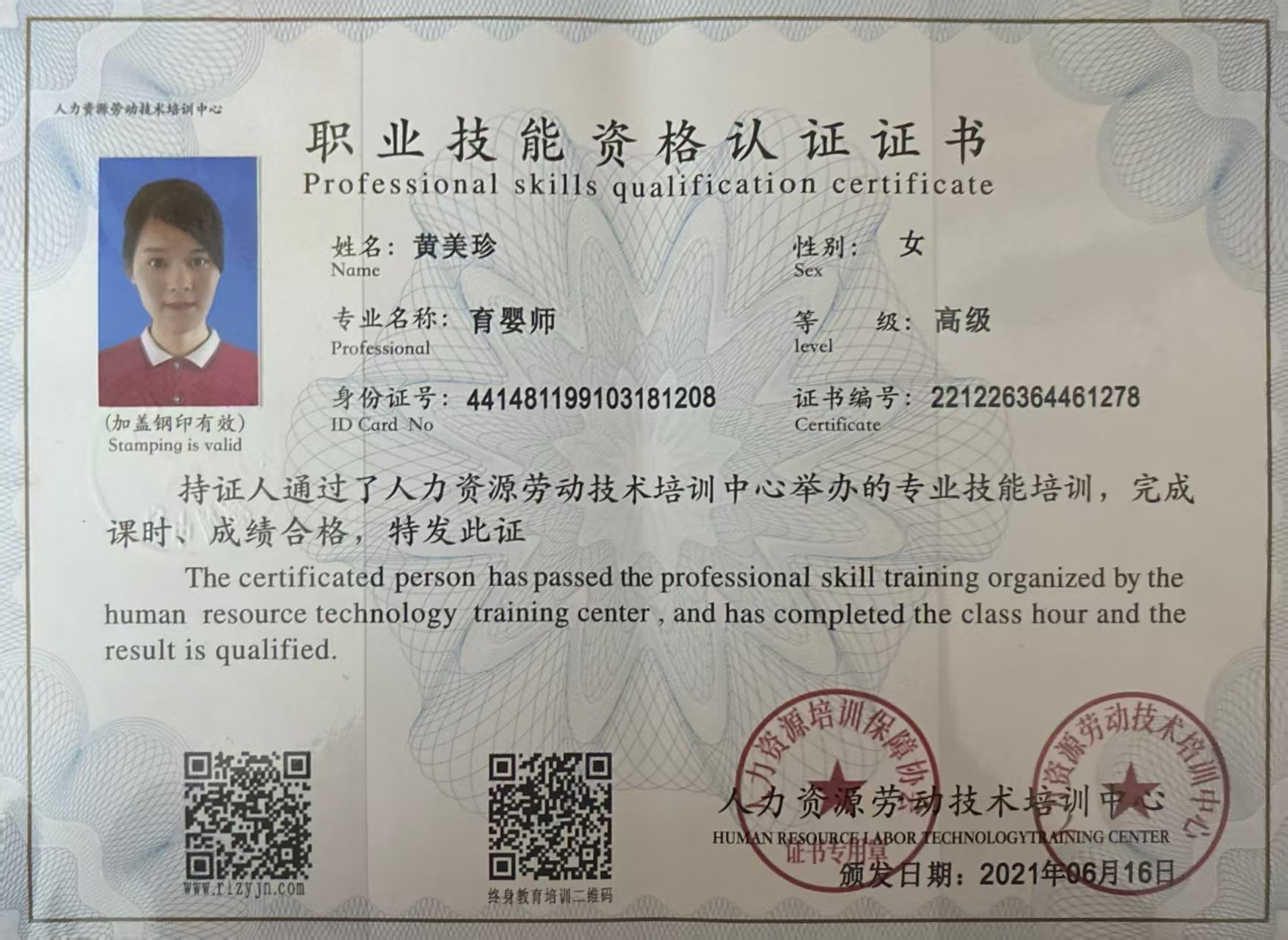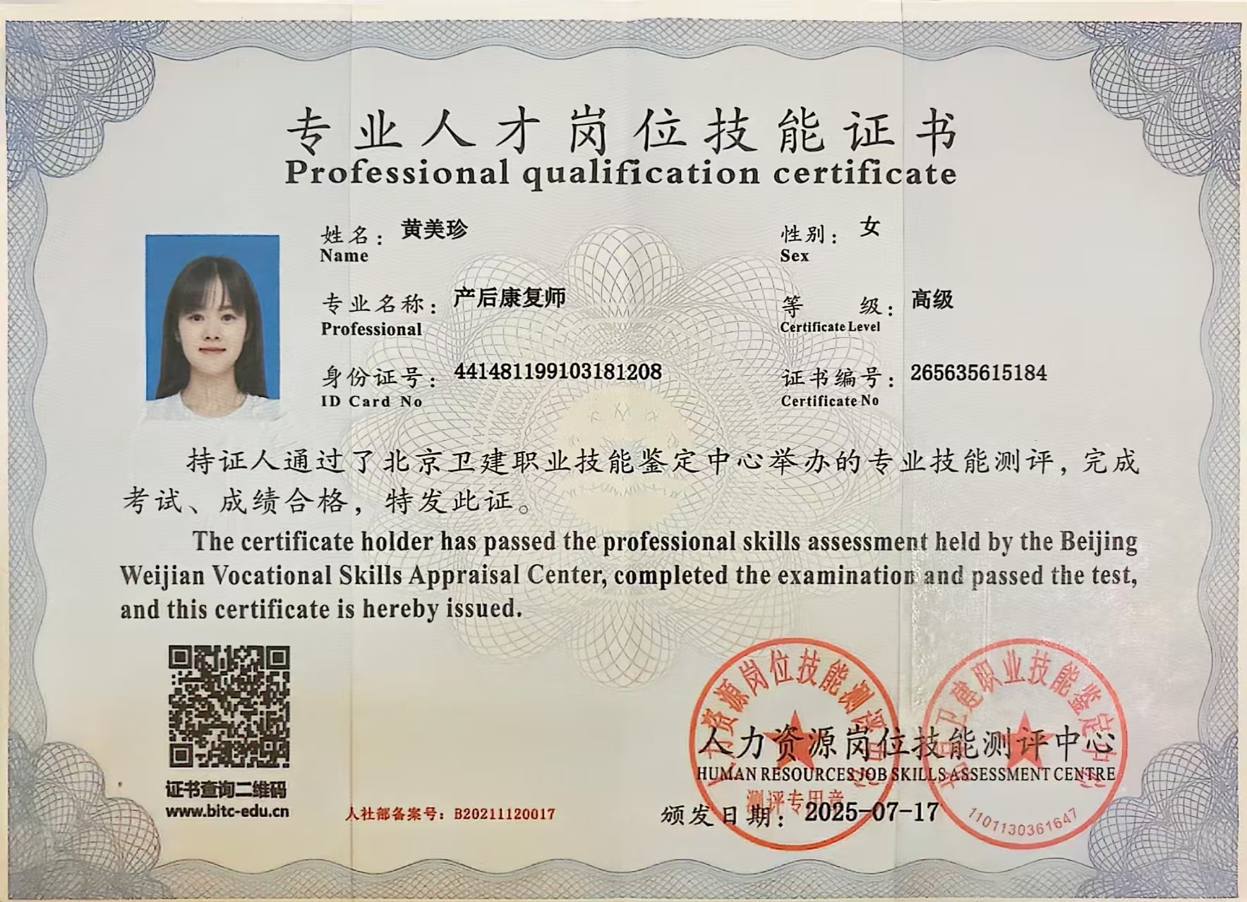 来自广东梅州,现住博罗,会普通话,客家话,粤语,性格活泼开朗,做事干净麻利,主动积极,不计较,育有3个小孩,大的12岁了。有月子会所的工作经验,护理了15个以上新生儿,2021年考证,2025年又重新学习母婴护理,经过专业的培训,熟练掌握了专业的知识与技能,具备护理新生儿及顺产产妇的经验,在宝宝护理方面擅长黄疸观察,脐部护理,红臀、大小便护理、五官清洁护理,喂奶拍嗝哄睡,洗澡,湿疹的预防及护理,呛奶急救等;产妇护理方面擅长乳房基本护理,恶露观察,伤口护理,客家月子餐等,喜欢宝宝,通过肢体动作、儿歌、英语儿歌、被动操、抚触按摩等方式对宝宝进行启蒙教育。