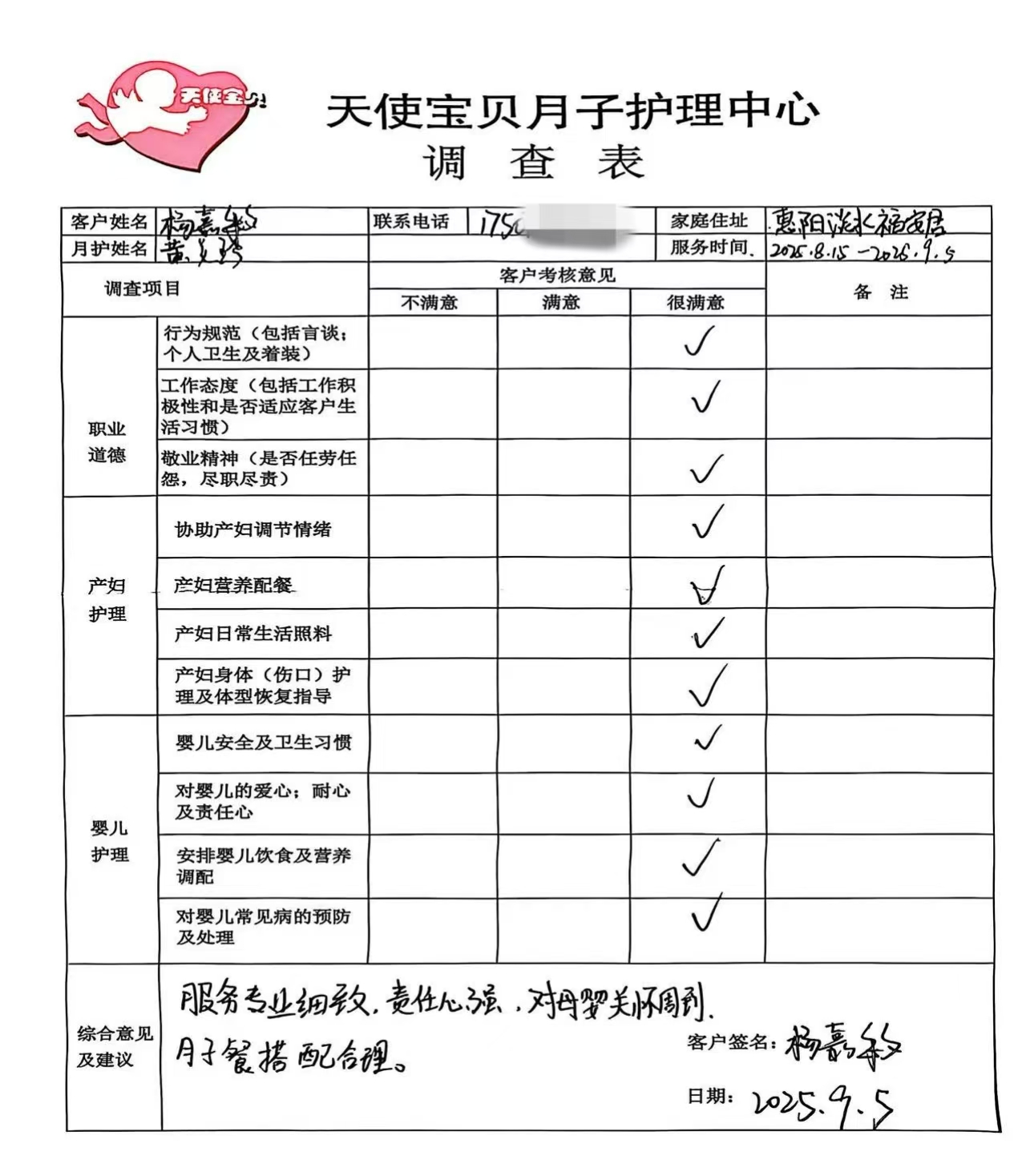 2025年 在惠州从事母婴护理工作