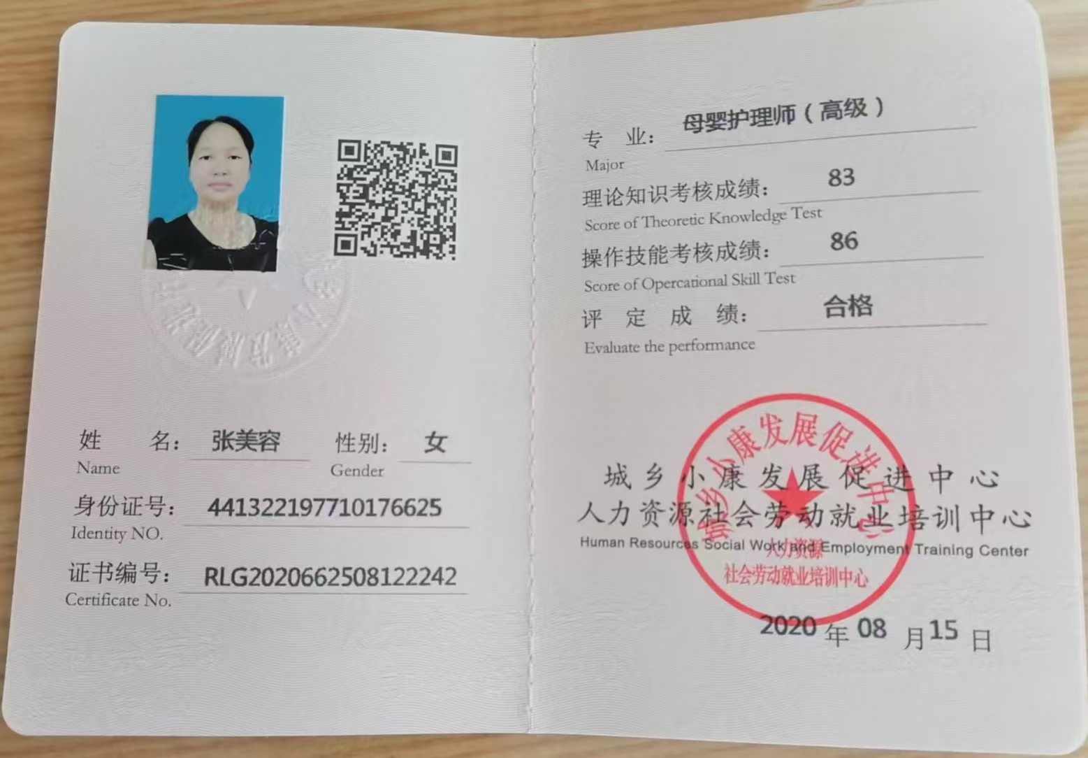 2020年 在惠州从事母婴护理工作