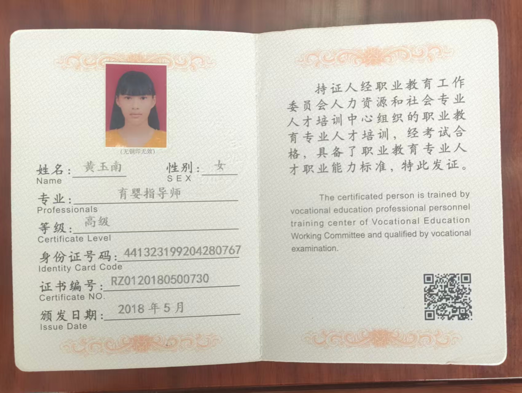 2017年 考取了母婴护理证