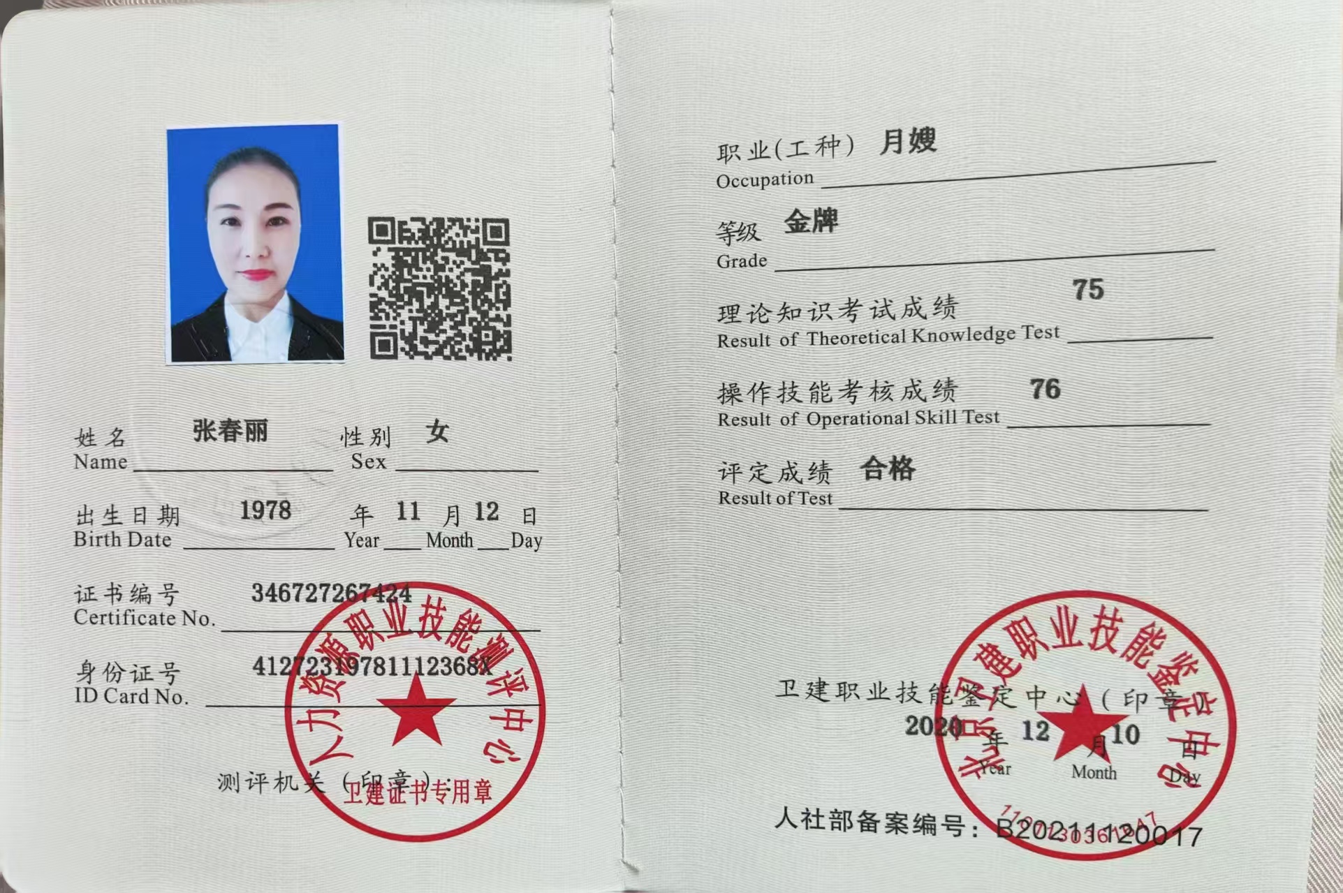 张姐性格开朗爱笑非常有亲和力,做事干练利索,积极主动,有高度的责任心,心态好,知心暖心大姐姐。做月嫂之前做了20多年的幼教工作,开办过幼儿园,非常有爱心,热爱这份工作,也造就了她与宝宝深深的缘份。相信她会照顾好我们的月子,让宝宝健康快乐成长!